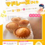 12月に開催し、好評を得た料理イベント第二弾を開催! たまごを泡立てて、マドレーヌをつくってみよう! 大学の先生が作り方を教えてくれるので、安心して楽しめます😊✨ 焼きたてのマドレーヌを一緒に楽しもう♪ 興味のある方はぜ […]