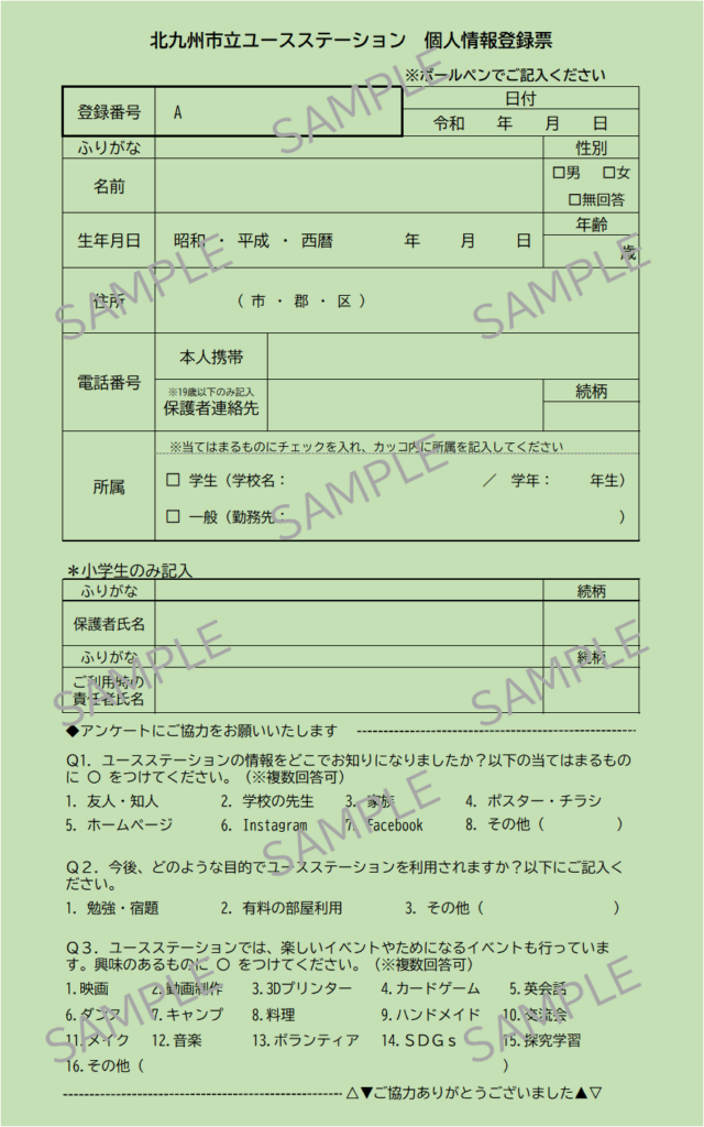 初めて来所した方は、個人情報登録票に個人情報をご記入ください。